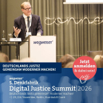 Der Digital Justice Summit ist die führende Veranstaltung auf Entscheiderlevel zur digitalen und strukturellen Transformation des Justizwesens. Er begleitet den Wandel aller Institutionen und Akteure im Umfeld der Judikative – von nationalen Entwicklungen bis zu europäischen Perspektiven.