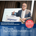 Der Digital Justice Summit schafft eine einzigartige Plattform für den gesamtgesellschaftlichen Dialog, um die volle Themenbandbreite der Modernisierung und Digitalisierung der Justiz zu diskutieren, neue Impulse zu setzen und tragfähige Lösungsansätze zu entwickeln. Im Fokus stehen konkrete Herausforderungen, praxisnahe Innovationen – und der Anspruch, gemeinsam ein zukunftsfestes Justizsystem zu gestalten.